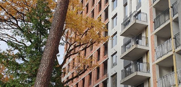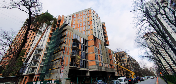 У вересні на майданчику ми відновили роботи по влаштуванню монолітного каркасу найвищої секції на рівні 12-го поверху. Дві нижчі секції висотою 11 і 4 поверхи вже завершено. Також відновлено роботу бригад, що здійснюють цегляну кладку. Основна задача на об'єкті зараз - закінчити влаштування "коробки" всіх трьох секцій комплексу і закрити її для проведення внутрішніх робіт.
