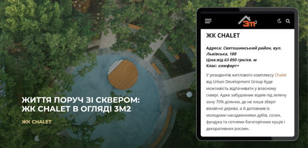 Chalet увійшов у ТОП ЖК столиці, що будуються поруч із парками та скверами
